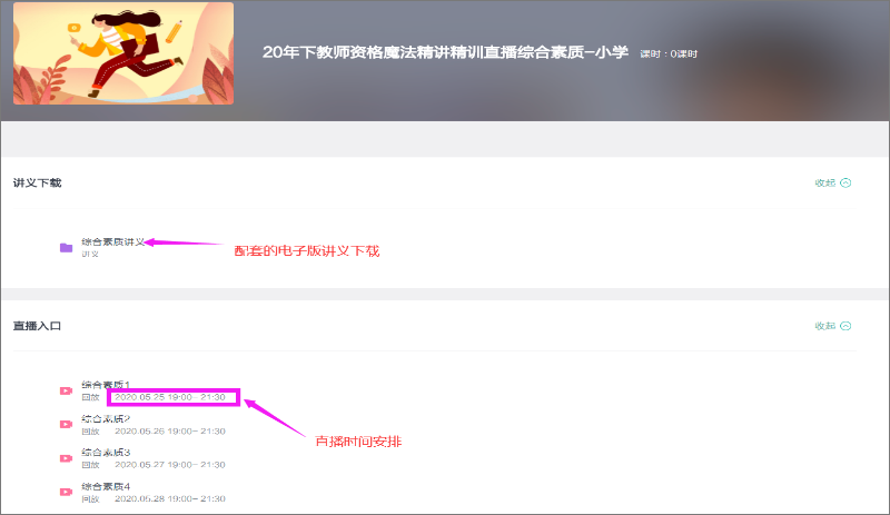 ③如您希望具體查看某個課程的直播內(nèi)容,可通過課程列表找到對應直播課程后,進入查看程安排。