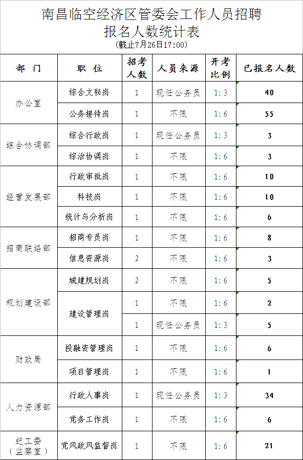 2015江西南昌臨空經(jīng)濟(jì)區(qū)管委會(huì)招聘報(bào)名人數(shù)統(tǒng)計(jì)表(截止7月26日17:00)