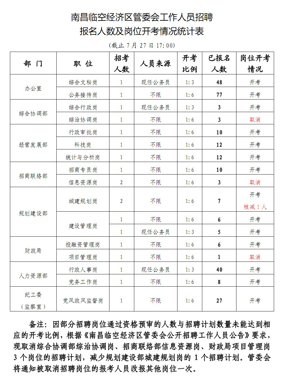 2015江西南昌臨空經(jīng)濟(jì)區(qū)管委會招聘報名人數(shù)及崗位開考統(tǒng)計表(截止7月27日17:00)