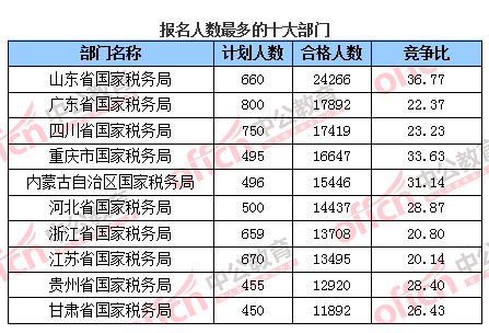 截止到21日17時,稅務系統(tǒng)共通過審核319167人,占總通過審核人數(shù)的51.8%——實實在在的“半壁江山”。其中,山東國稅“一馬當先”,過審人數(shù)兩萬,達到24266人,平均競爭比為36.77:1。