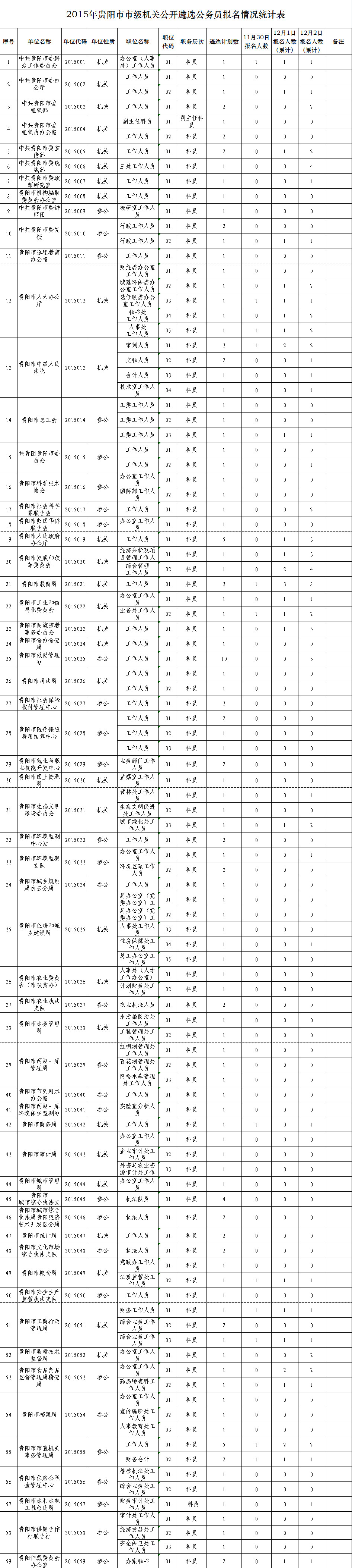 2015貴州貴陽市級機關(guān)公務(wù)員遴選報名情況統(tǒng)計表