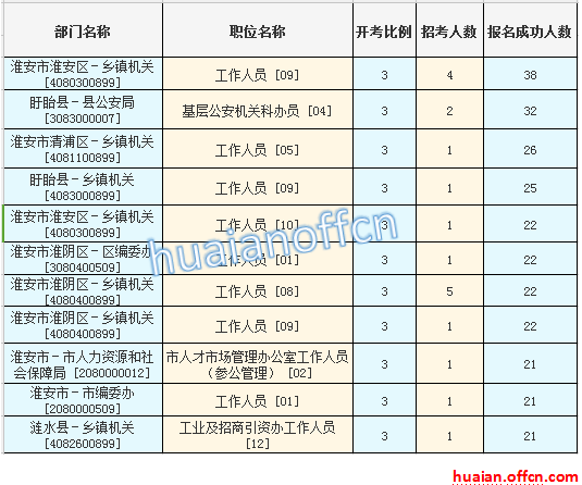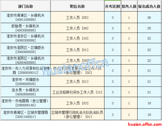 淮安市報名競爭最激烈的十大職位