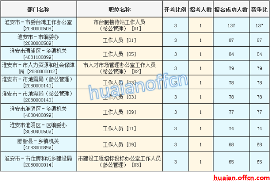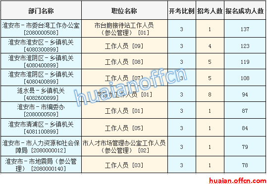 淮安市報(bào)名競(jìng)爭(zhēng)最激烈的十大職位