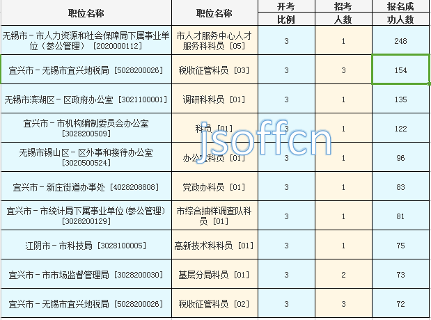 無(wú)錫市考報(bào)名人數(shù)最多的十大職位