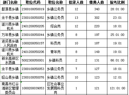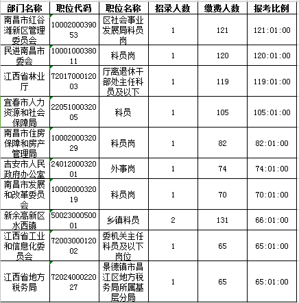 全省報考繳費(fèi)人數(shù)排名前十的職位