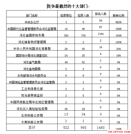 截止到16日8時,競爭比例的職位為中央辦公廳中直北戴河服務局園林綠化處主任科員,招錄1人,截止到16日8時通過人數(shù)為20人,競爭比例2000%,再創(chuàng)河北市競爭比例新高!