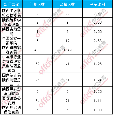 為幫助廣大考生更清晰的了解今日報名情況,陜西中公網(wǎng)校整理了審核通過人數(shù)前幾位的部門以及競爭比例最激烈的幾大部門,供廣大考生參考: