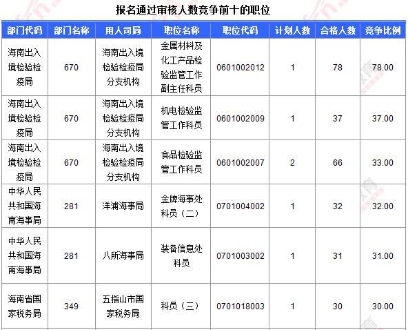 報(bào)名通過(guò)前十的職位具體信息如下: