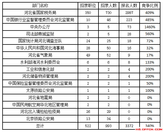 截至17日8時(shí),據(jù)河北中公教育統(tǒng)計(jì),2017國(guó)考招錄職位中工作地點(diǎn)在河北的職位通過(guò)審核總?cè)藬?shù)為3372,平均競(jìng)爭(zhēng)比例為3.4:1。