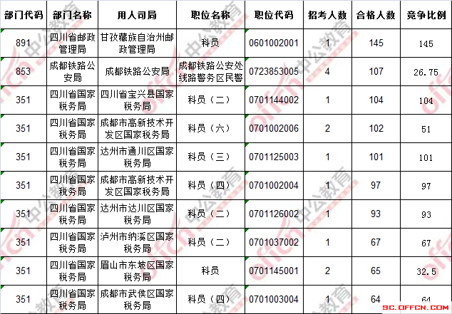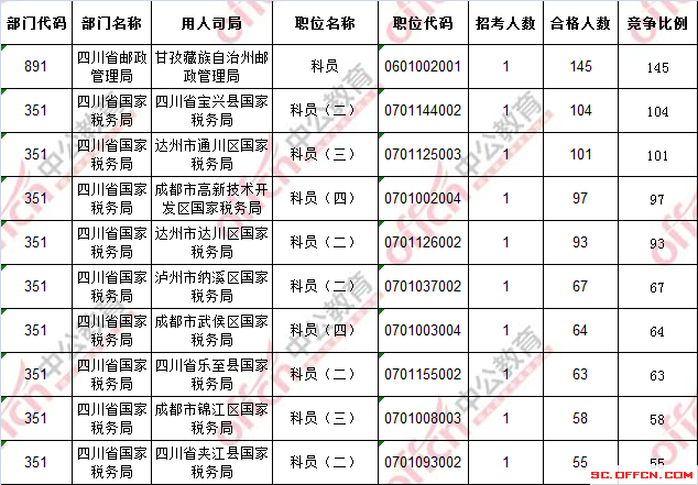 首日報名通過審核人數(shù)前十的職位主要集四川省國家稅務局等部門,具體信息如下: