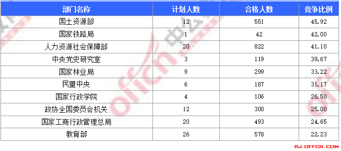 為幫助廣大考生更清晰的了解今日?qǐng)?bào)名情況,北京中公網(wǎng)校整理了合格人數(shù)前十位的部門以及競(jìng)爭(zhēng)比例最激烈的十大部門,供廣大考生參考:
