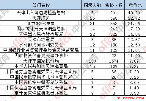 為幫助廣大考生更清晰的了解今日?qǐng)?bào)名情況,天津中公網(wǎng)校整理了審核通過(guò)人數(shù)前五位的部門(mén)以及競(jìng)爭(zhēng)比例最激烈的五大部門(mén),供廣大考生參考: