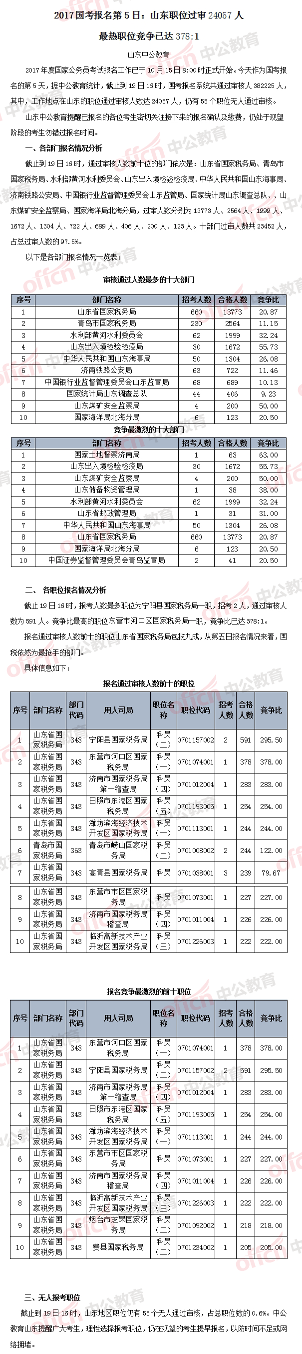 【截至19日16時】2017國考山東職位過審24057人 最熱職位競爭已達378:1
