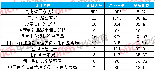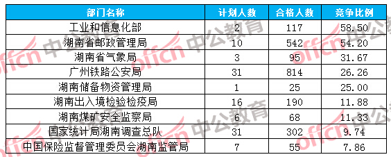為幫助廣大考生更清晰的了解今日報(bào)名情況,湖南中公網(wǎng)校整理了審核通過人數(shù)前十大部門以及競爭比例最激烈的十大部門,供廣大考生參考: