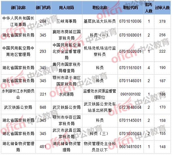 【截至20日8時(shí)】2017國(guó)考報(bào)名湖北12194人通過審核,56個(gè)職位無人通過審核