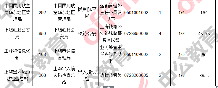 報名通過審核人數(shù)前十的職位主要集中在上海出上海海關(guān)、上海出入境邊防檢查總站、中國民用航空局華東地區(qū)管理局,具體信息如下: