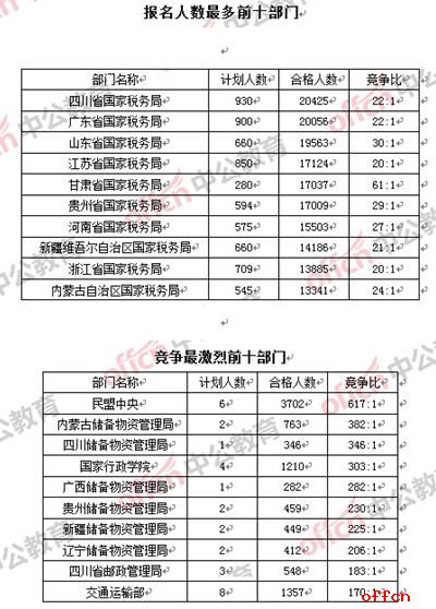今日國稅的強(qiáng)勁勢頭依舊不減,四川和廣東兩省的國稅兩萬大關(guān),與去年同期報名合格人數(shù)最多部門的18715人相比,今年國稅必定會成為一個“硝煙彌漫”的“廝殺重地”。