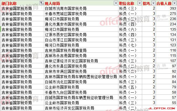 吉林省國家稅務(wù)局報(bào)名人數(shù)最多前20崗位