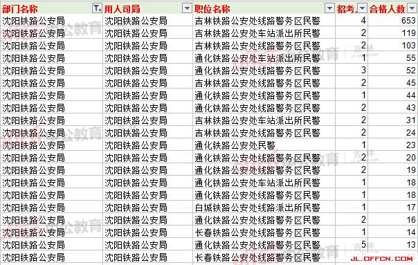 沈陽鐵路公安局報(bào)名人數(shù)最多前20崗位