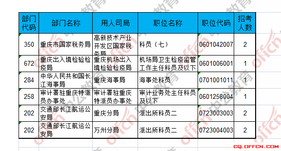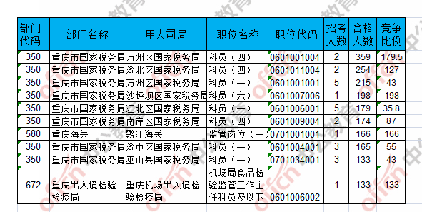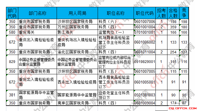 報(bào)名通過審核人數(shù)前十的職位主要集中在萬州區(qū)國家稅務(wù)局、渝北區(qū)國家稅務(wù)局、沙坪壩區(qū)國家稅務(wù)局等部門,具體信息如下: