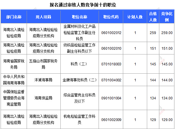 報(bào)名通過前十的職位具體信息如下: