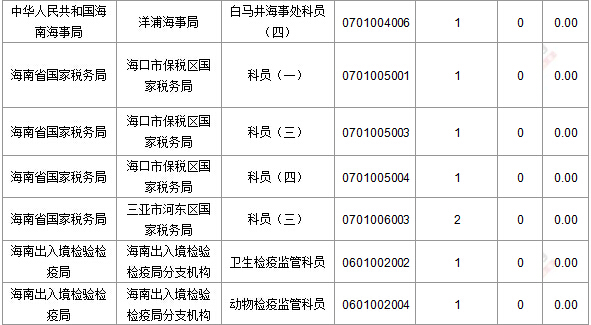 截止到21日8時(shí),各部門報(bào)名仍以國稅局和海南出入境檢驗(yàn)檢疫局為主,兩部門共報(bào)名3142人。占報(bào)名總?cè)藬?shù)的67%,相比之下,其他部門一天時(shí)間報(bào)名人數(shù)幾乎沒有增加。