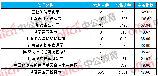 為幫助廣大考生更清晰的了解今日?qǐng)?bào)名情況,湖南中公網(wǎng)校整理了審核通過人數(shù)前十大部門以及競爭比例最激烈的十大部門,供廣大考生參考: