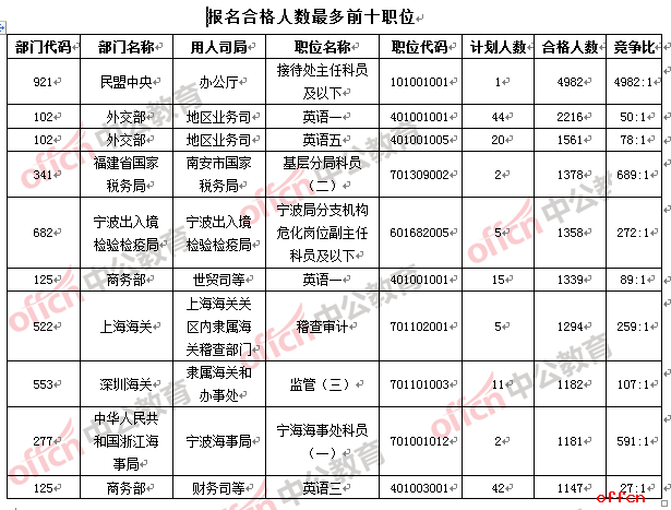 【截至22日8時】2017國考報名人數(shù)統(tǒng)計:最熱職位4982:1 民盟熱度遠超去年最熱部門