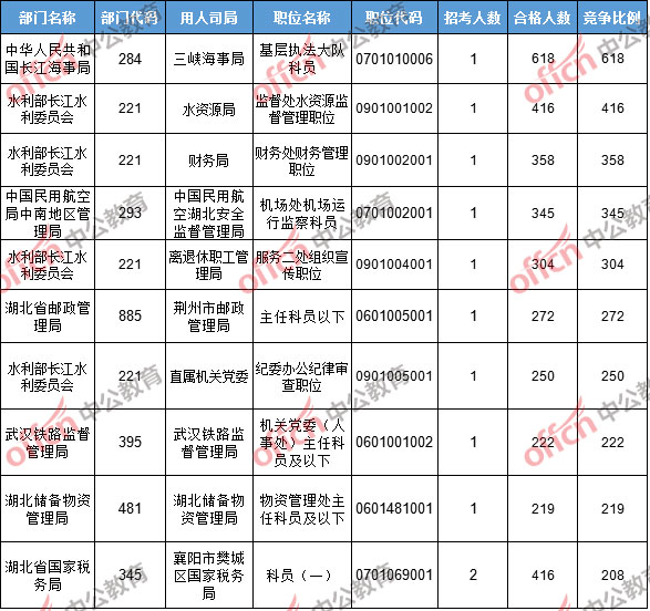 截止到22日16時(shí),競爭比例和報(bào)考人數(shù)最多的職位仍然為中華人民共和國長江海事局基層執(zhí)法大隊(duì)科員職位,招錄1人,截止到22日16時(shí)通過人數(shù)為618人!