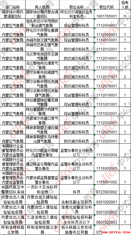 截止到23日8時(shí),工作地點(diǎn)在內(nèi)蒙古23個(gè)職位無人報(bào)考。具體職位如下: