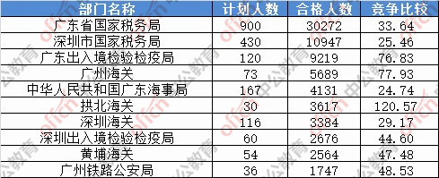 報(bào)名通過審核人數(shù)前十的職位主要集中在深圳海關(guān)、拱北海關(guān)、廣東省國(guó)家稅務(wù)局,具體信息如下: