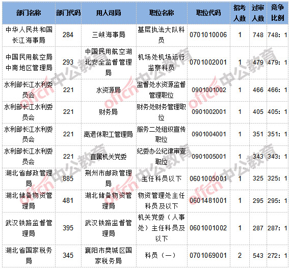 截止到10月24日8時,報名通過審核人數(shù)和競爭比例的職位為三峽海事局基層執(zhí)法大隊科員一職,招錄1人,過審人數(shù)748人,競爭比例為748:1。具體信息如下: