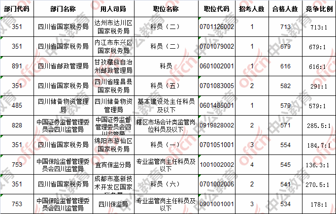 首日報名通過審核人數(shù)前十的職位主要集四川省國家稅務(wù)局等部門,具體信息如下: