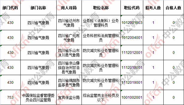截止到24日17:30,工作地點在四川的職位仍有6個無人報考,以下是詳細情況: