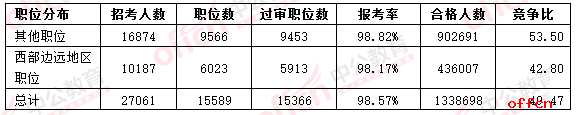 盡管西部邊遠(yuǎn)地區(qū)部分職位條件艱苦,待遇較低,不是大家青睞的對(duì)象,但國家連續(xù)幾年招錄政策向基層傾斜,比如降低門檻、拉低分?jǐn)?shù)線、調(diào)節(jié)年齡等諸多優(yōu)惠政策,這些政策出臺(tái)發(fā)揮了基層導(dǎo)向作用,西部邊遠(yuǎn)地區(qū)職位的報(bào)考率達(dá)到了98.17%,基本與其他職位報(bào)考率持平,說明基層公務(wù)員隊(duì)伍將實(shí)現(xiàn)“招賢納士”的愿望。