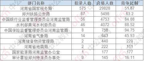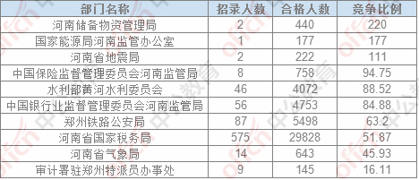 截止24日17:30,通過審核人數(shù)前三位的部門依次是:河南省國家稅務局、鄭州鐵路公安局,中國銀行業(yè)監(jiān)督管理委員會河南監(jiān)管局,三部門通過審核總?cè)藬?shù)40079人,占通過審核總?cè)藬?shù)的86.08%。