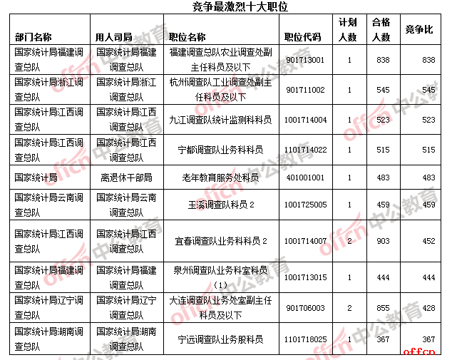 2017國考報(bào)名結(jié)束:統(tǒng)計(jì)局過審45491人 平均競爭比51:1