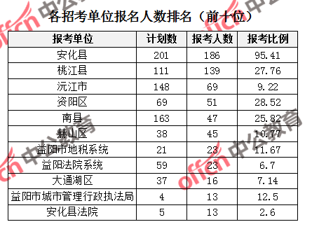 為幫助廣大考生更清晰的了解報(bào)名情況,中公教育整理了益陽(yáng)市各招考單位的報(bào)名人數(shù)排名以及競(jìng)爭(zhēng)比例排名,供廣大考生參考: