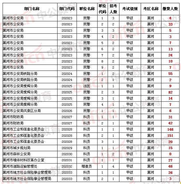 【黑河地區(qū)】2014年黑龍江省公務(wù)員考試報(bào)名人數(shù)統(tǒng)計(jì)