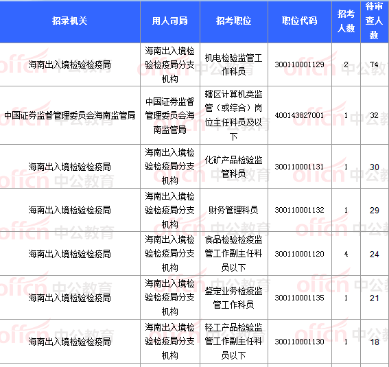 報(bào)名通過審核人數(shù)前十的職位主要集中在海南省郵政管理局、國家統(tǒng)計(jì)局海南調(diào)查總隊(duì)、海南出入境檢驗(yàn)檢疫局等部門,具體信息如下: