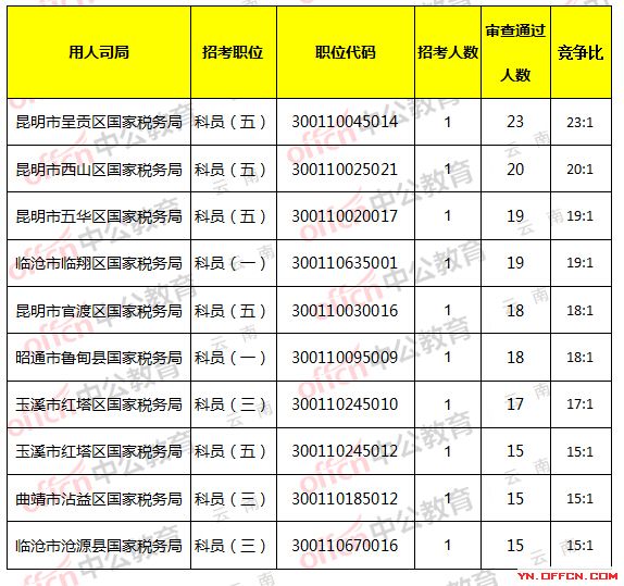 2018國(guó)家公務(wù)員考試國(guó)稅局招錄考試報(bào)名人數(shù)也可以自行查詢(xún)了:截止11月1日16時(shí)昆明市盤(pán)龍區(qū)國(guó)家稅務(wù)局,職位代碼:300110015025,招錄1人,審查通過(guò)人數(shù)為2214人,占國(guó)稅報(bào)名的61.79%,暫時(shí)競(jìng)爭(zhēng)比為47:1,具體信息如下: