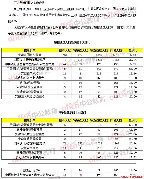 【11月3日16時(shí)】2018國考報(bào)名人數(shù)統(tǒng)計(jì):安徽8269人通過審核,最熱職位107:1