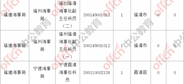 截止到5日16時(shí),工作地點(diǎn)在福建的職位共有11個(gè)無(wú)人報(bào)考,占全部職位的4.97%。下面是無(wú)人報(bào)考職位一覽表,中公網(wǎng)校專家建議廣大考生多關(guān)注一些較冷職位,避免激烈競(jìng)爭(zhēng),結(jié)合自身?xiàng)l件,找到屬于自己的職位。
