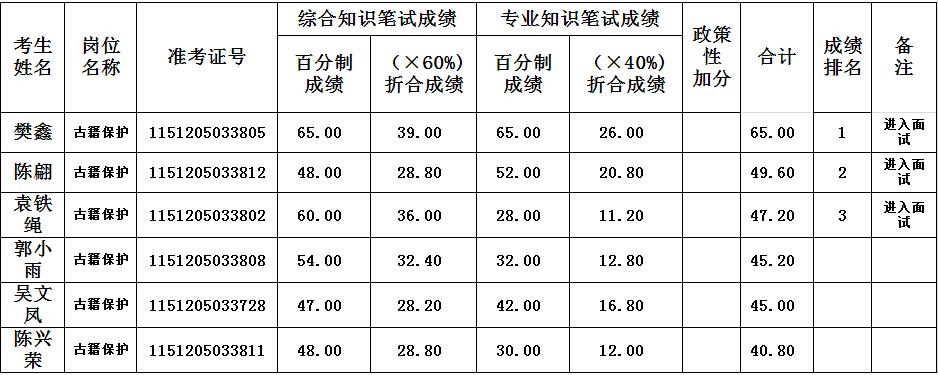 2015四川南充市圖書館招聘筆試總成績