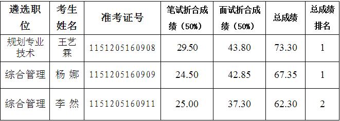 南充市城鄉(xiāng)規(guī)劃和測(cè)繪地理信息局高坪區(qū)辦公室、嘉陵區(qū)辦公室2015年下半年遴選公務(wù)員筆試、面試工作已結(jié)束,現(xiàn)將考試總成績(jī)及排名公告如下: