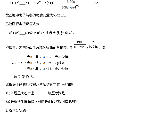 [試題] 甲、乙兩個電解池均以Pt為電極,且互相串聯(lián),甲池盛有AgNO3溶液,乙池盛有一定量的某鹽溶液。通電一段時間后,測得甲池中陰極質(zhì)量增加2.16g,乙池中電極上析出0.24g金屬,則乙池中溶質(zhì)可能是( )