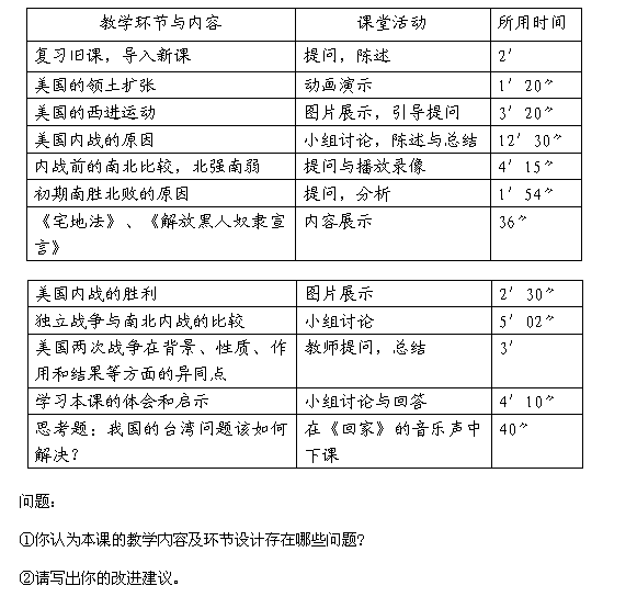 (2)下面是某教師關(guān)于美國內(nèi)戰(zhàn)一課的教學(xué)過程描述表。