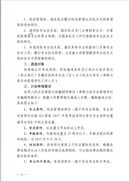 2015年江西省南昌市機關(guān)公務(wù)員(參照公務(wù)員法管理單位工作人員)遴選通知