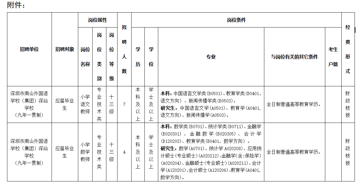 附件:1深圳市南山外國語學校深汕學校招聘應屆畢業(yè)生崗位表sz.xlsx