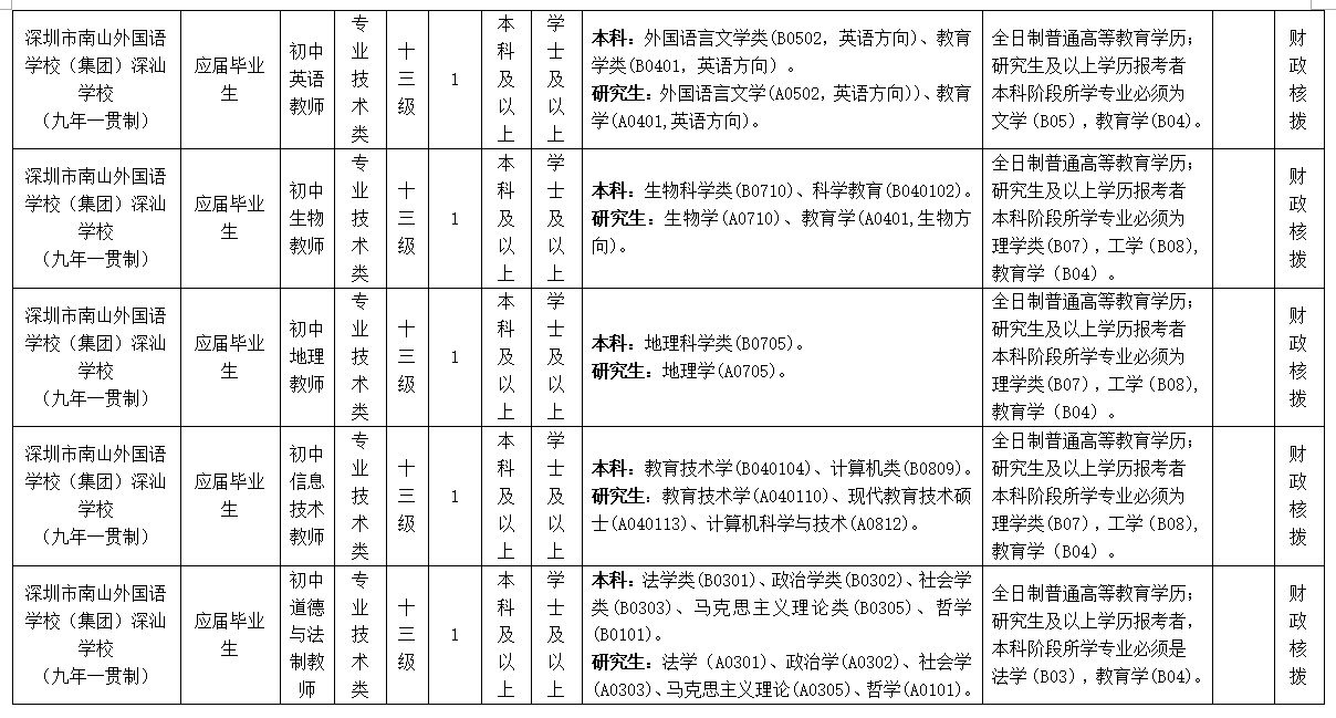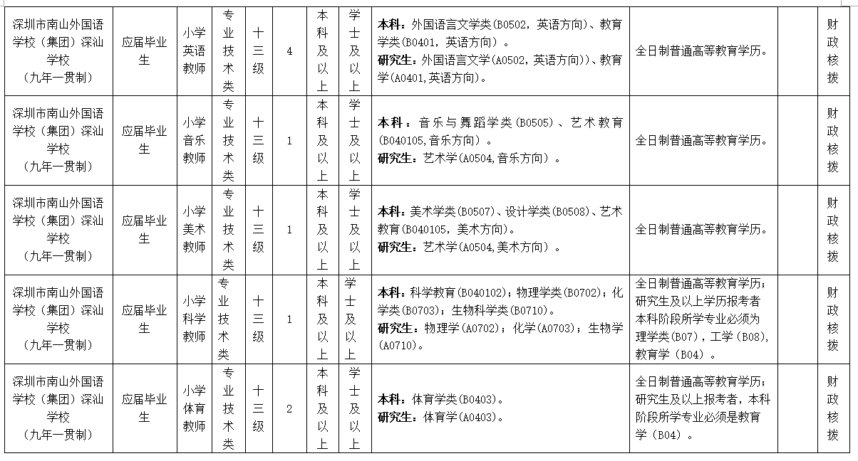 為進一步加強我區(qū)骨干教師隊伍建設(shè),根據(jù)《廣東省事業(yè)單位公開招聘人員辦法》(廣東省人民政府令第139號),深圳市南山外國語學校()深汕學校(九年一貫制)招聘應屆畢業(yè)生34名,現(xiàn)將有關(guān)事項公告如下: